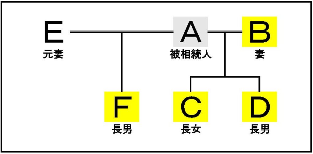 この場合には、Aさんの前妻Eさんは当然のことながら相続人にならないものの、AさんとEさんとの間に生まれたFさんは相続人になります。